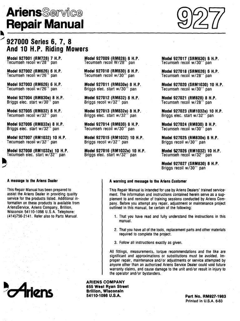 Ariens 927 Riding Mower Oem Oem Owners Manual Ariens 927 Amazon Com Books from images-na.ssl-images-amazon.com We did not find results for: Check spelling or type a new query. Maybe you would like to learn more about one of these?